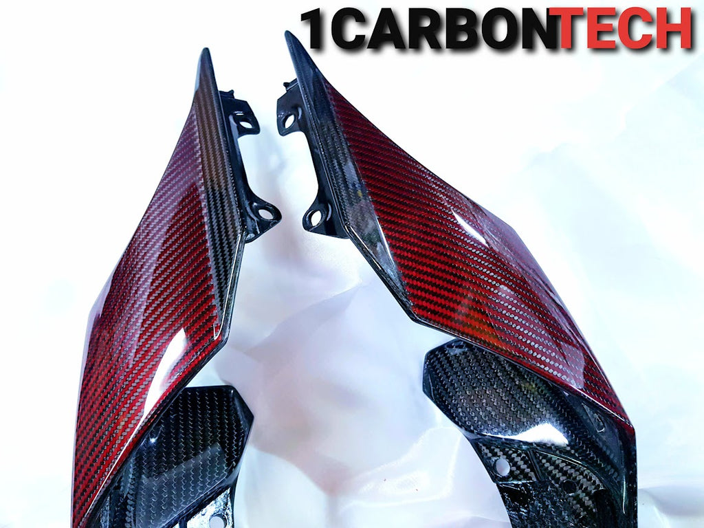 FULL CARBON FIBER AND RED KEVLAR HYBRID TAIL SIDE COWLINGS L-R, UNIQUE PIECE FOUND NOWHERE ELSE!!